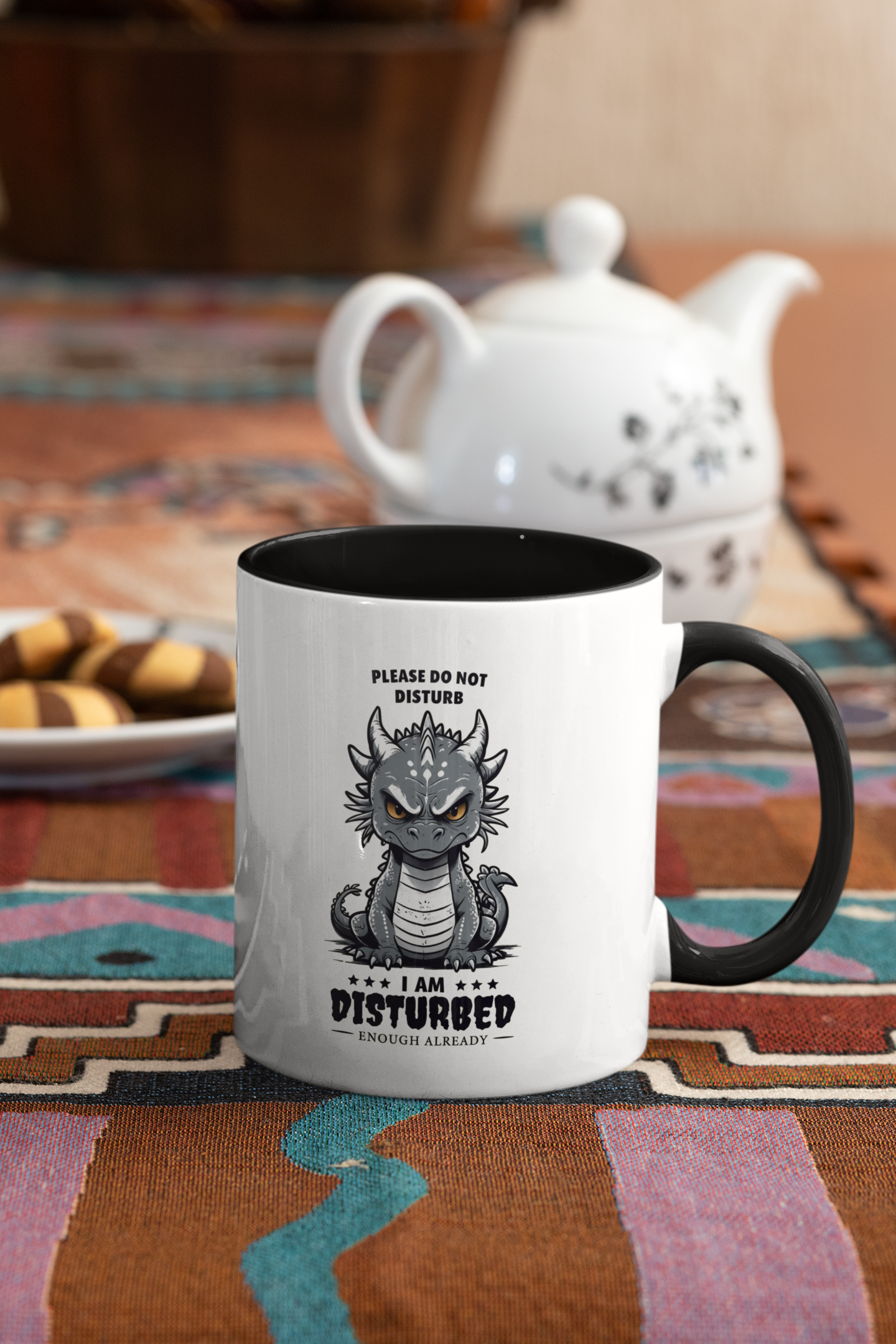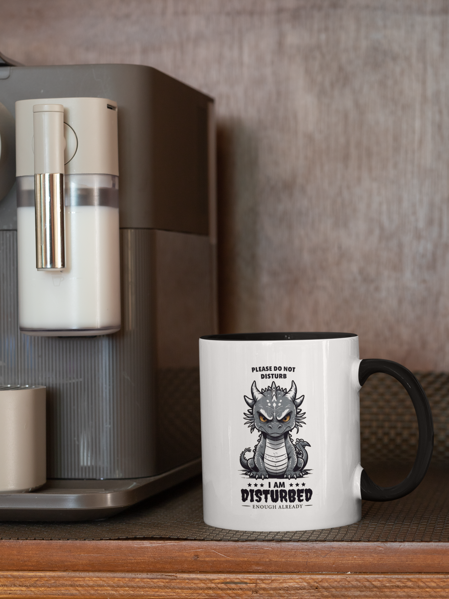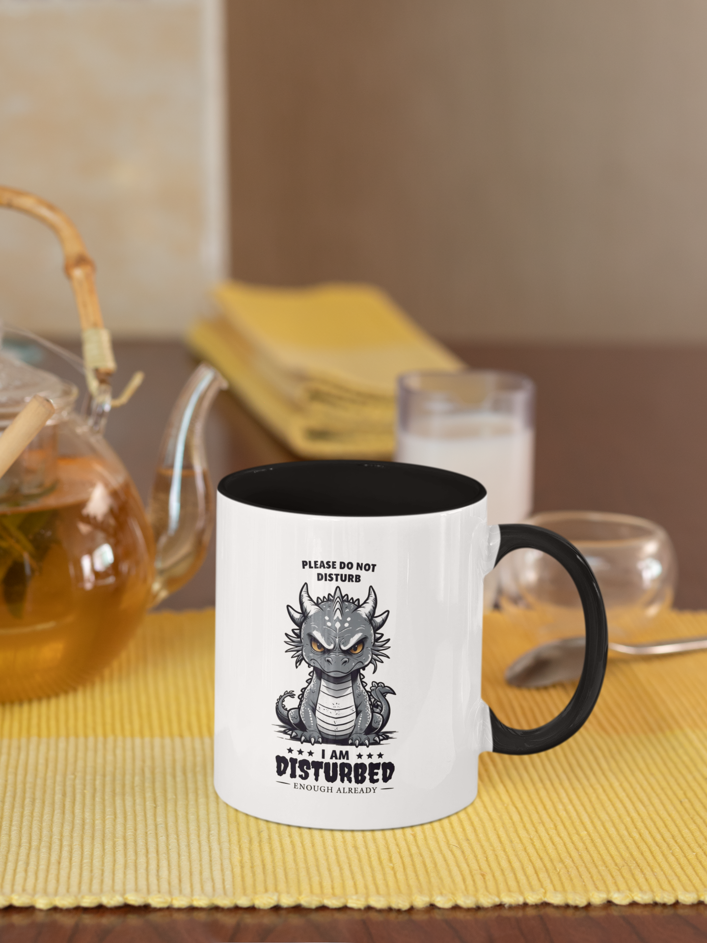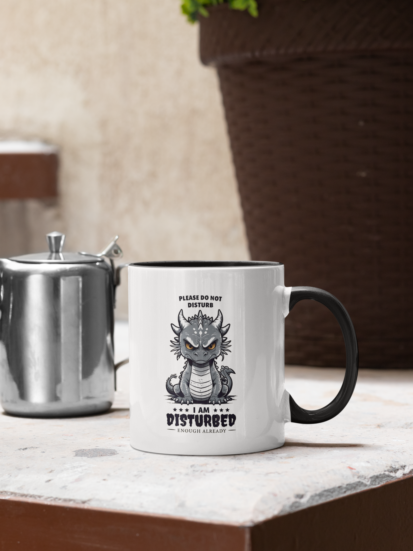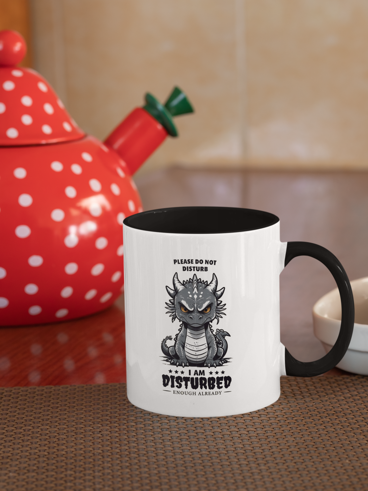 Start your mornings with a mug that matches your mood! Featuring an adorably grumpy gray dragon and the hilariously relatable message: "Please Do Not Disturb – I Am Disturbed Enough Already", this mug is perfect for anyone who’s had enough before the coffee even brews.