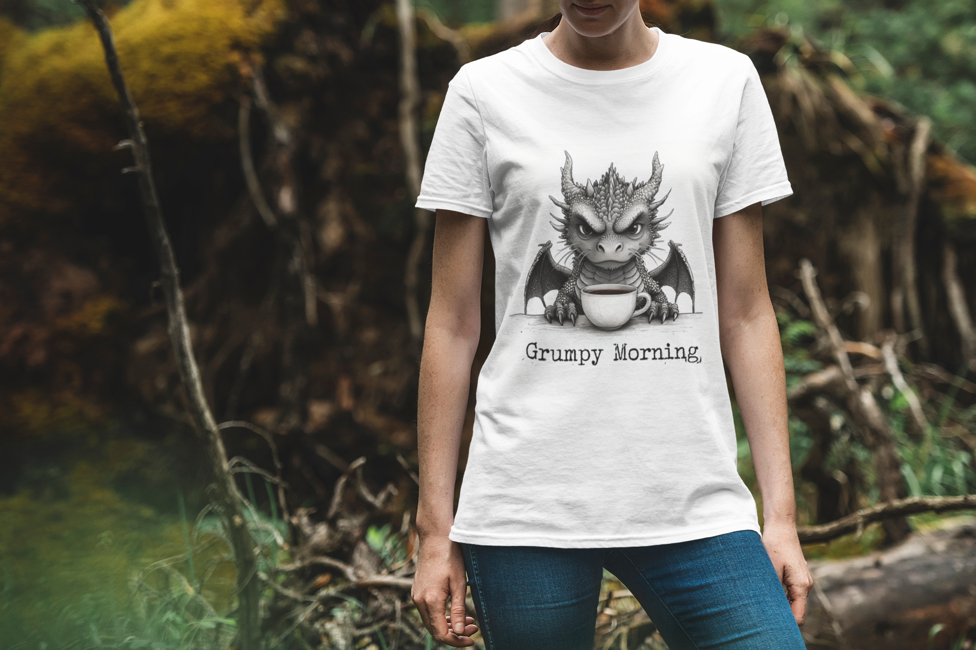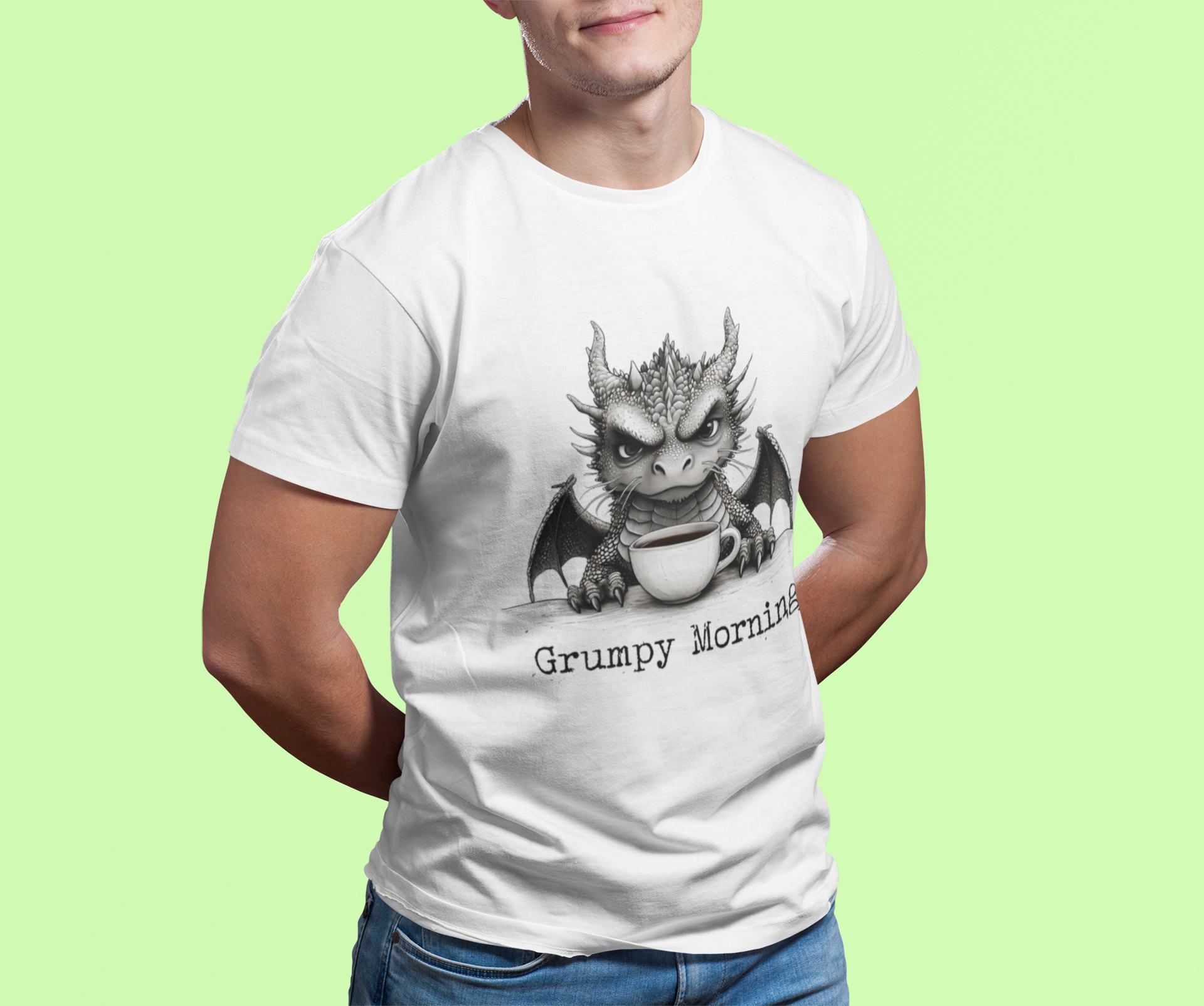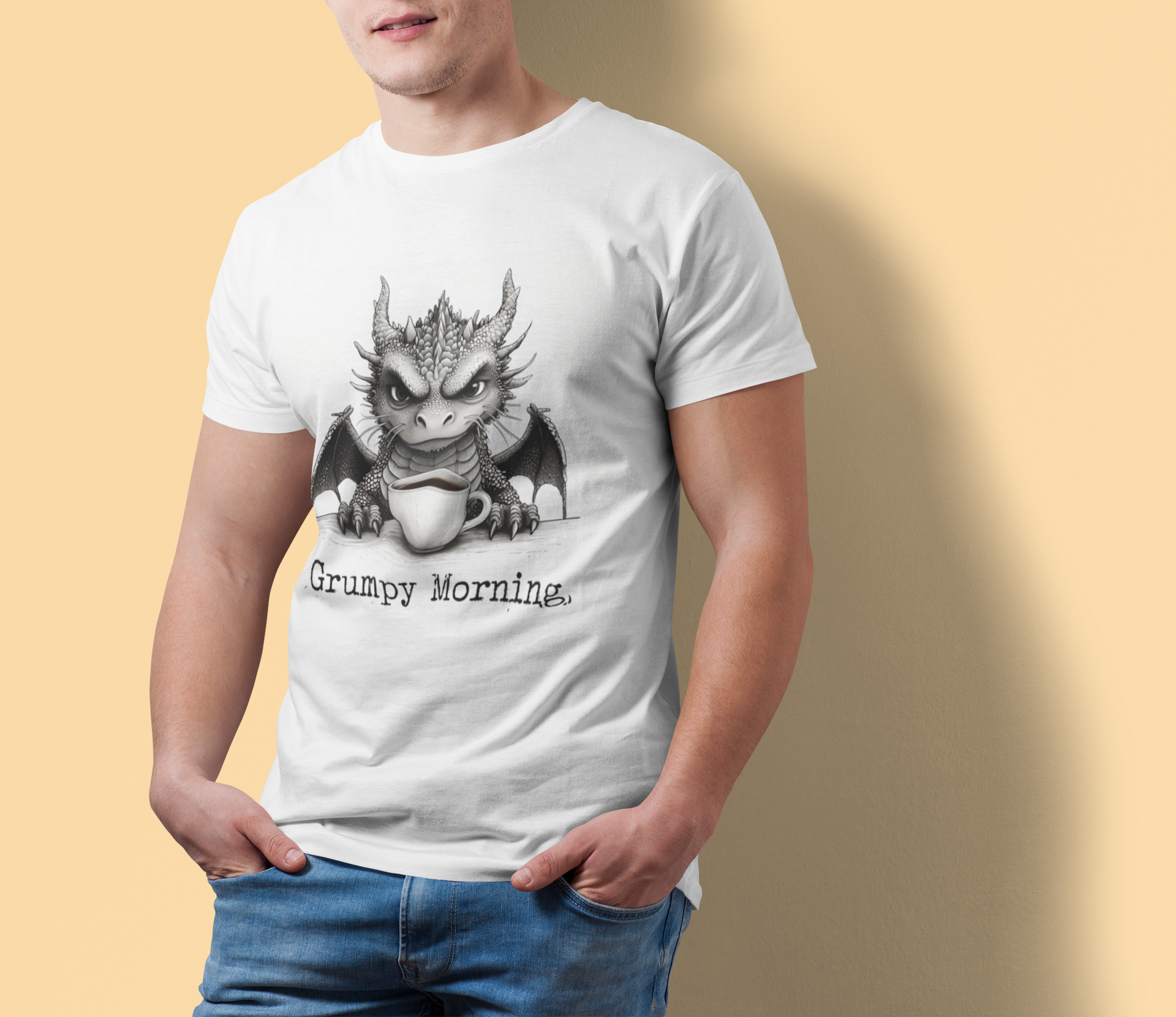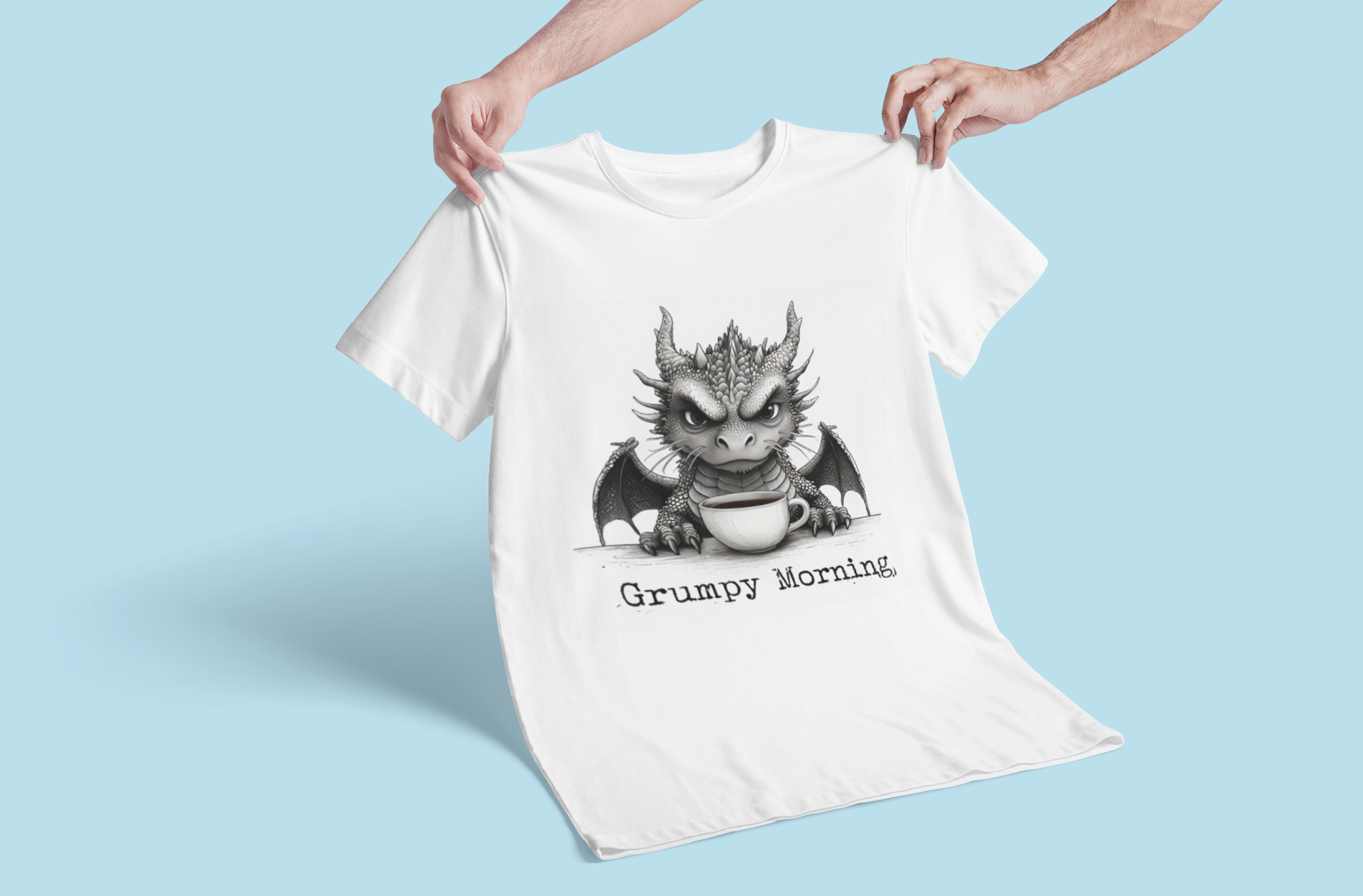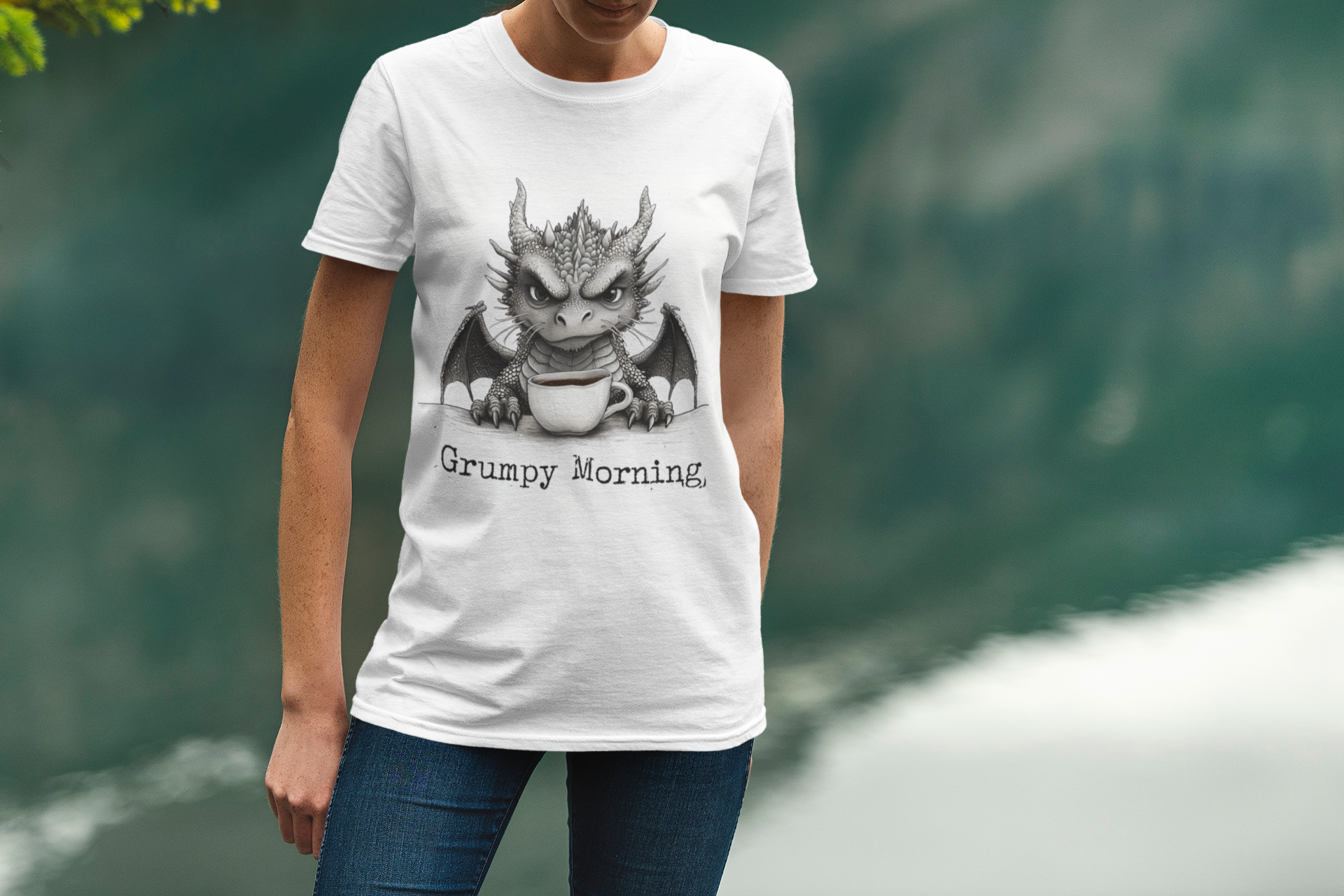 Start your day with a little fire and a lot of caffeine. Meet the "Grumpy Morning" dragon tshirt – the ultimate mood mascot for anyone who needs their coffee before conversation. This design is perfect for mornings when you're not quite ready to deal with the realm (or people).