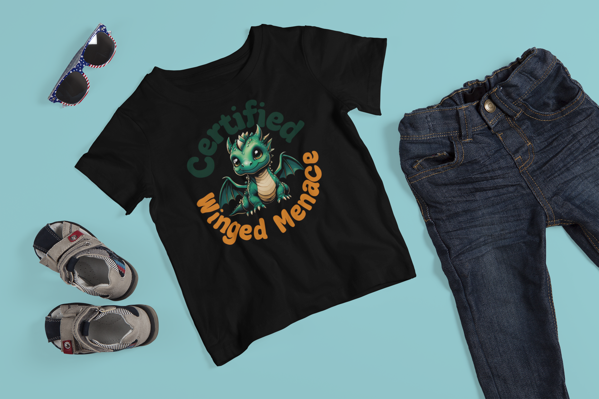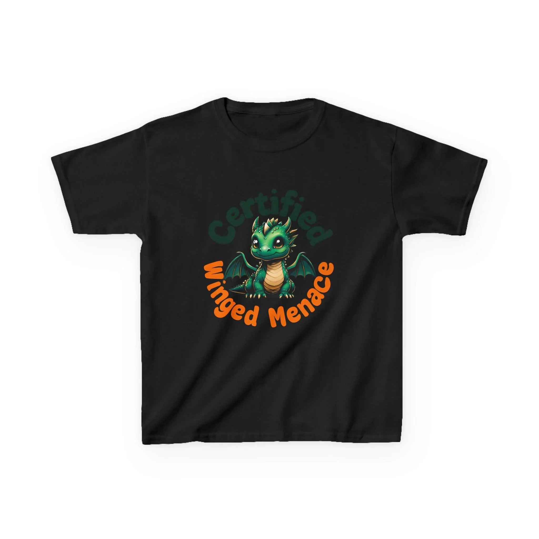 Kids Dragon T-Shirt: "Certified Winged Menace" Graphic Tee